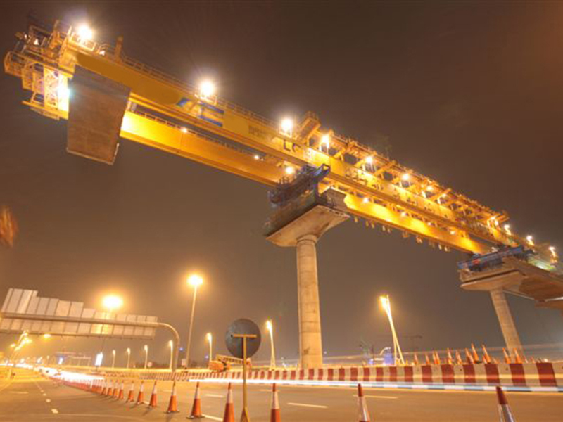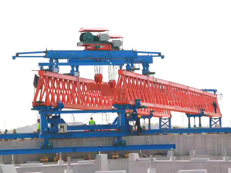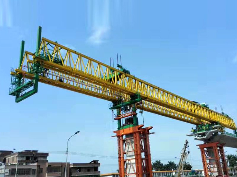 架橋機就是將預(yù)制好的梁片放置到預(yù)制好的橋墩上去的設(shè)備。架橋機屬于起重機范疇,因為其主要功能是將梁片提起,然后運送到位置后放下。但其與一般意義上的起重機有很大的不同。其要求的條件苛刻,并且存在梁片上
